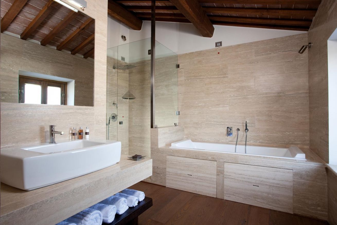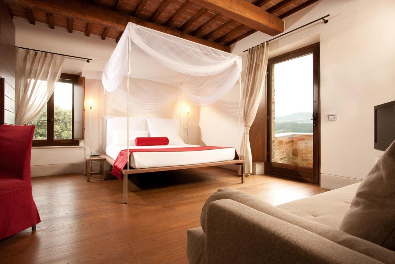 Le Superior Deluxe sono le nostre stanze più spaziose. Vantano la miglior vista e possono accomodare fino a 3/4 persone. Se il vostro desiderio e' farvi un idromassaggio ammirando le colline toscane circostanti questa è la stanza che fa per voi. Gli ampi bagni hanno pareti in pietra naturale e accessori moderni, tra cui la vasca idromassaggio e una cabina doccia separata in vetro. Nel servizio sono inclusi impianto autonomo di aria condizionata, televisione 32” LCD con canali satellitari, Wi Fi e mini bar.